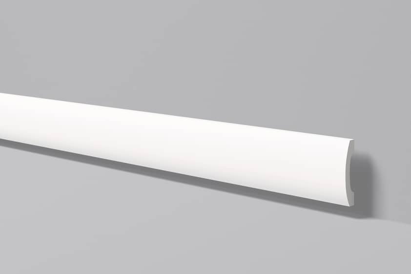 Pobierz teksturęListwa przypodłogowa wykonana z wysokiej gęstości polistyrenu. Powłoka gładka z farbą podkładową, przygotowana do malowania. Listwa jest lekka, twarda, odporna na wodę i wilgoć, odporna na zmywanie, niepalna oraz nietoksyczna. Listwa w nowoczesnym stylu.