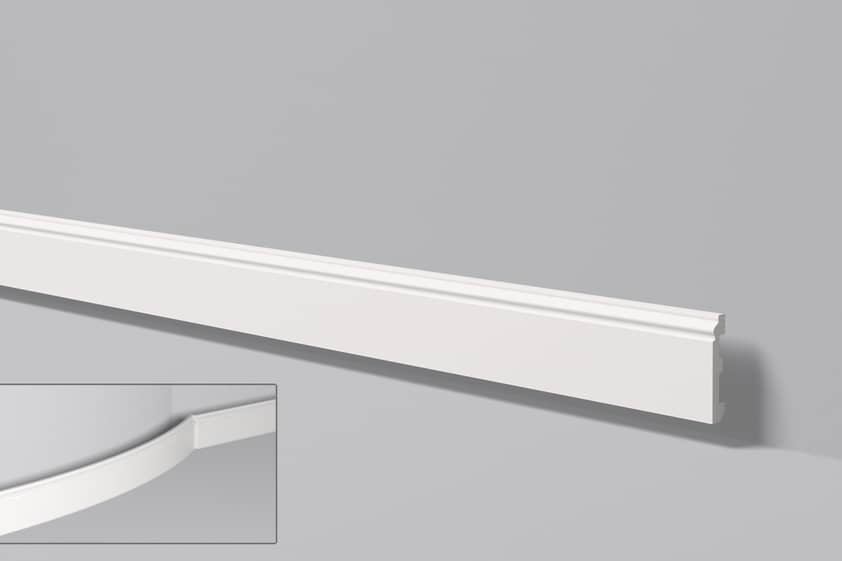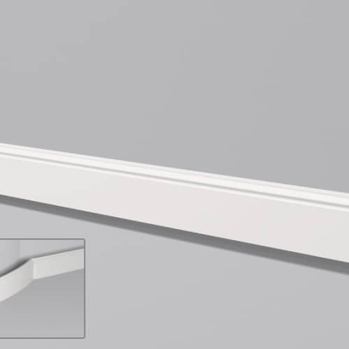 Pobierz teksturęListwa przypodłogowa wykonana z wysokiej gęstości polistyrenu. Powłoka gładka z farbą podkładową, przygotowana do malowania. Listwa jest lekka, twarda, odporna na wodę i wilgoć, odporna na zmywanie, niepalna oraz nietoksyczna. Listwa w nowoczesnym stylu.