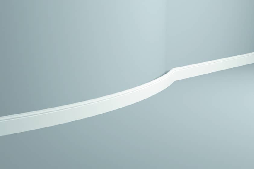 Listwa przypodłogowa wykonana z wysokiej gęstości polistyrenu. Powłoka gładka z farbą podkładową, przygotowana do malowania. Listwa jest lekka, twarda, odporna na wodę i wilgoć, odporna na zmywanie, niepalna oraz nietoksyczna. Występuje w formie giętkiej. Listwa w nowoczesnym stylu.