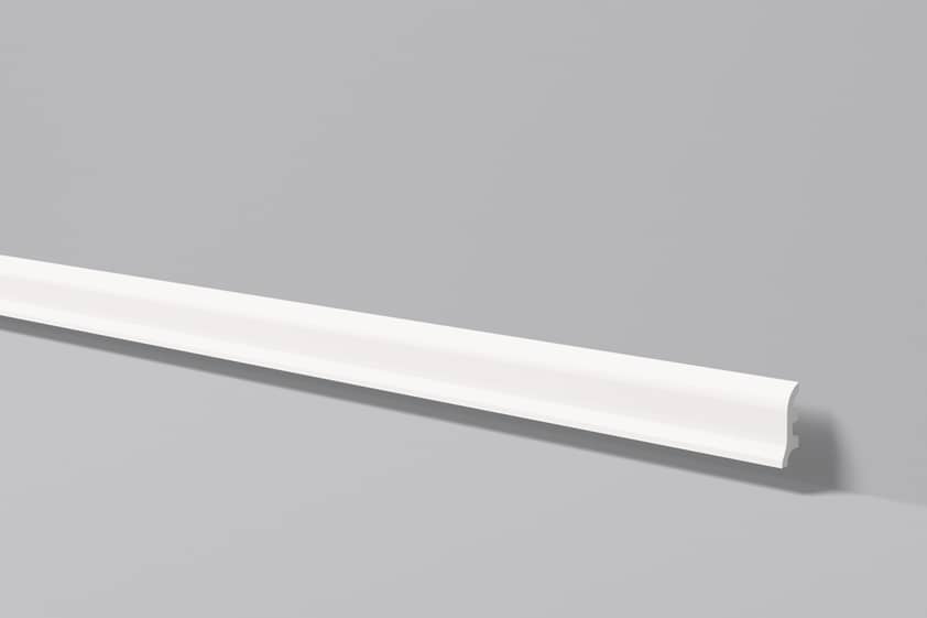 Listwa przypodłogowa wykonana z wysokiej gęstości polistyrenu. Powłoka gładka z farbą podkładową, przygotowana do malowania. Listwa jest lekka, twarda, odporna na wodę i wilgoć, odporna na zmywanie, niepalna oraz nietoksyczna. Listwa w nowoczesnym stylu.