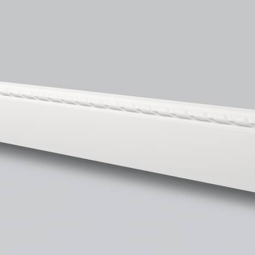 Pobierz teksturęListwa przypodłogowa wykonana z wysokiej gęstości polistyrenu. Powłoka gładka z farbą podkładową, przygotowana do malowania. Listwa jest lekka, twarda, odporna na wodę i wilgoć, odporna na zmywanie, niepalna oraz nietoksyczna. Listwa w nowoczesnym stylu.