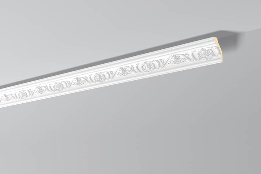 Pobierz teksturęListwa wykonana z wysokiej gęstości poliuretanu. Powierzchnia listwy gładka, przygotowana do malowania. Produkt jest lekki, odporny na wodę i wilgoć. Listwa w stylu klasycznym, bogato zdobiona.