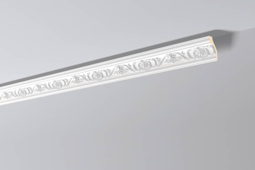 Pobierz teksturęListwa ARSTYL jest wykonana z twardego poliuretanu o wysokiej gęstości. Powłoka jest gładka pomalowana białą farbą podkładową, przygotowana do malowania. Listwa jest lekka, wytrzymała, odporna na wodę i wilgoć. Można malować wszystkimi farbami lateksowymi, emulsyjnymi, akrylowymi, metalicznymi na bazie wody. Listwa w klasycznym stylu, bogato zdobiona.