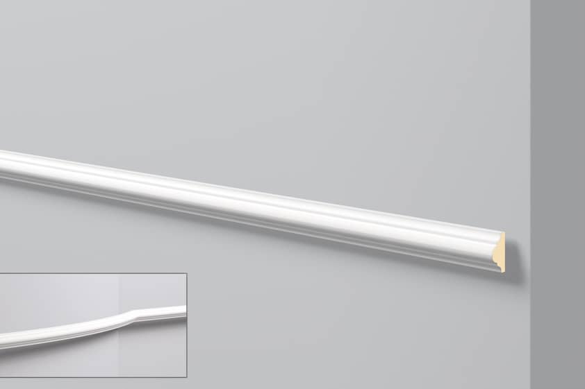 Pobierz teksturęListwa przyścienna wykonana z wysokiej gęstości Poliuretanu. Powłoka gładka przygotowana do malowania. Jest lekka, twarda, odporna na wodę i wilgoć, odporna na zmywanie, niepalna oraz nietoksyczna. Można malować wszystkimi farbami lateksowymi, emulsyjnymi, akrylowymi, metalicznymi na bazie wody. Listwa w klasycznym stylu.