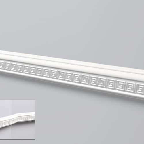Pobierz teksturęListwa przyścienna wykonana z wysokiej gęstości Poliuretanu. Powłoka gładka przygotowana do malowania. Jest lekka, twarda, odporna na wodę i wilgoć, odporna na zmywanie, niepalna oraz nietoksyczna. Można malować wszystkimi farbami lateksowymi, emulsyjnymi, akrylowymi, metalicznymi na bazie wody. Listwa w klasycznym stylu, bogato zdobiona.