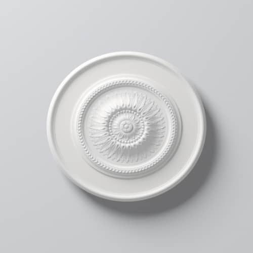 Rozeta ARSTYL jest wykonana z twardego poliuretanu o wysokiej gęstości. Powłoka jest gładka pomalowana białą farbą podkładową, przygotowana do malowania. Rozeta jest lekka, wytrzymała, odporna na wodę i wilgoć. Można malować wszystkimi farbami emulsyjnymi, akrylowymi, metalicznymi na bazie wody.