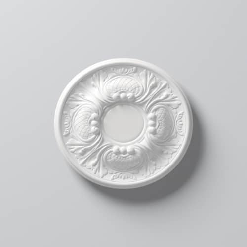 Pobierz teksturęRozeta ARSTYL jest wykonana z twardego poliuretanu o wysokiej gęstości. Powłoka jest gładka pomalowana białą farbą podkładową, przygotowana do malowania. Rozeta jest lekka, wytrzymała, odporna na wodę i wilgoć. Można malować wszystkimi farbami emulsyjnymi, akrylowymi, metalicznymi na bazie wody.