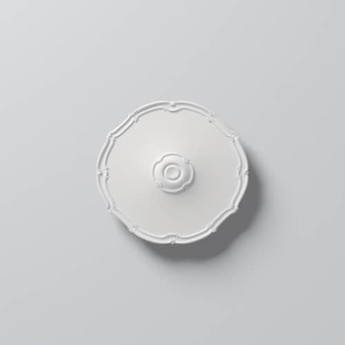 Rozeta ARSTYL jest wykonana z twardego poliuretanu o wysokiej gęstości. Powłoka jest gładka pomalowana białą farbą podkładową, przygotowana do malowania. Rozeta jest lekka, wytrzymała, odporna na wodę i wilgoć. Można malować wszystkimi farbami emulsyjnymi, akrylowymi, metalicznymi na bazie wody.