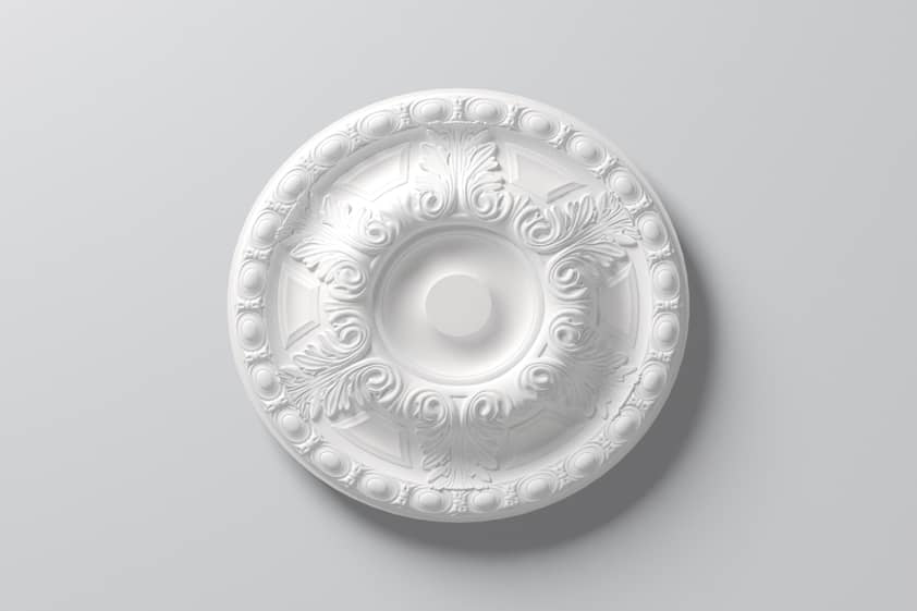 Pobierz teksturęRozeta ARSTYL jest wykonana z twardego poliuretanu o wysokiej gęstości. Powłoka jest gładka pomalowana białą farbą podkładową, przygotowana do malowania. Rozeta jest lekka, wytrzymała, odporna na wodę i wilgoć. Można malować wszystkimi farbami emulsyjnymi, akrylowymi, metalicznymi na bazie wody.