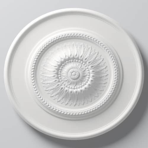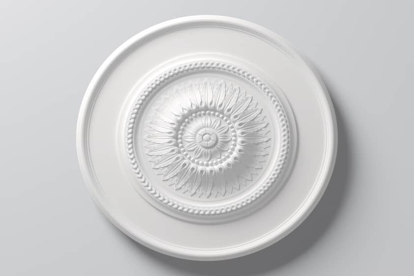 Pobierz teksturęRozeta ARSTYL jest wykonana z twardego poliuretanu o wysokiej gęstości. Powłoka jest gładka pomalowana białą farbą podkładową, przygotowana do malowania. Rozeta jest lekka, wytrzymała, odporna na wodę i wilgoć. Można malować wszystkimi farbami emulsyjnymi, akrylowymi, metalicznymi na bazie wody.