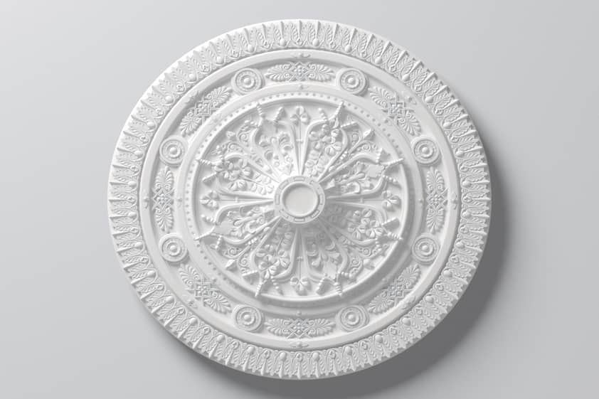 Pobierz teksturęRozeta ARSTYL jest wykonana z twardego poliuretanu o wysokiej gęstości. Powłoka jest gładka pomalowana białą farbą podkładową, przygotowana do malowania. Rozeta jest lekka, wytrzymała, odporna na wodę i wilgoć. Można malować wszystkimi farbami emulsyjnymi, akrylowymi, metalicznymi na bazie wody.