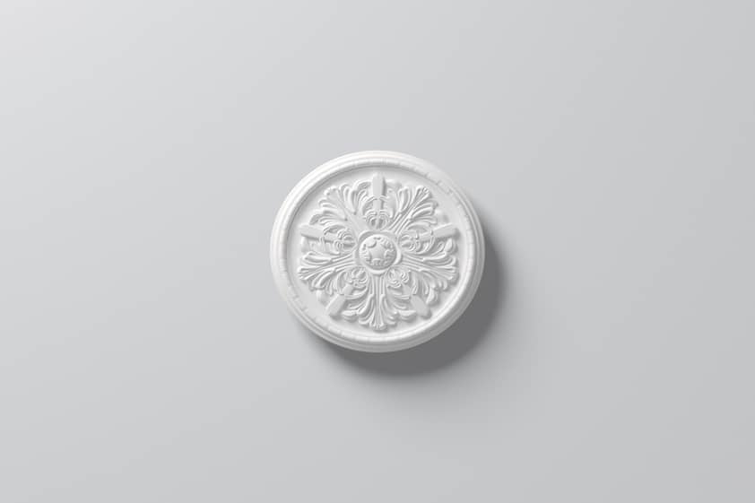 Rozeta ARSTYL jest wykonana z twardego poliuretanu o wysokiej gęstości. Powłoka jest gładka pomalowana białą farbą podkładową, przygotowana do malowania. Rozeta jest lekka, wytrzymała, odporna na wodę i wilgoć. Można malować wszystkimi farbami emulsyjnymi, akrylowymi, metalicznymi na bazie wody.