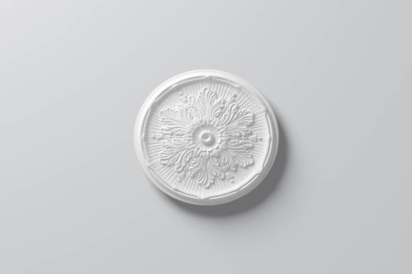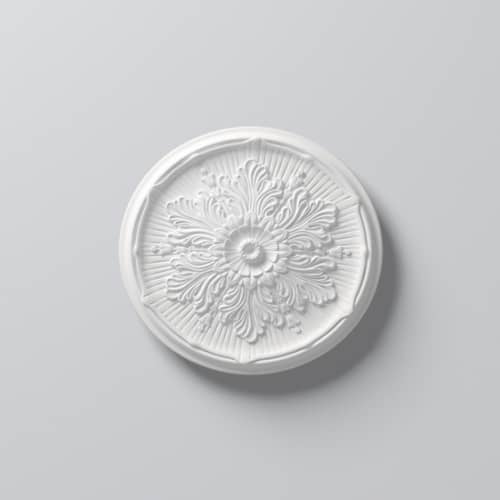 Rozeta ARSTYL jest wykonana z twardego poliuretanu o wysokiej gęstości. Powłoka jest gładka pomalowana białą farbą podkładową, przygotowana do malowania. Rozeta jest lekka, wytrzymała, odporna na wodę i wilgoć. Można malować wszystkimi farbami emulsyjnymi, akrylowymi, metalicznymi na bazie wody.