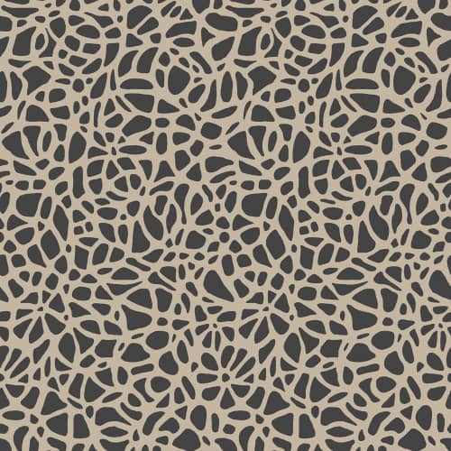 Pobierz teksturęNowoczesna tapeta o zróżnicowanej strukturze pochodzi z kolekcji Capri angielskiej marki 1838 Wallcoverings. Czarny welurowy wzór na gładkim błyszczącym złotym tle inspirowany kamienistą plażą. Tapeta jest przyjemna w dotyku. Nada wnętrzom niepowtarzalnego charakteru.