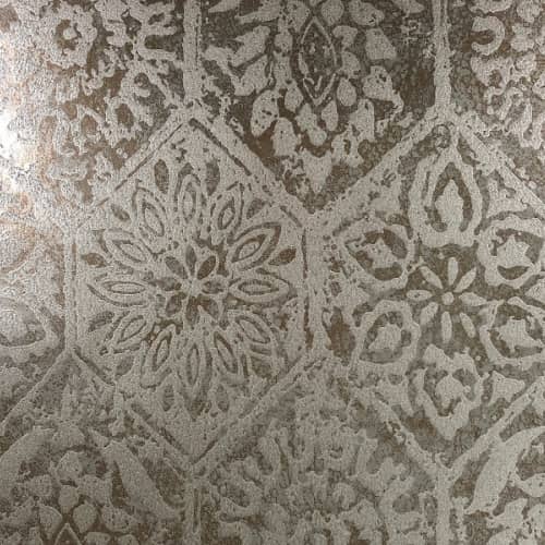 Imponująca tapeta angielskiej firmy 1838 Wallcoverings z kolekcji Capri to powiew śródziemnomorskiego klimatu we wnętrzu. Wzór płytek w kolorze brązu został wydrukowany na subtelnej fakturze, tworząc efekt miękkiego tynku. Tapeta z efektem delikatnego połysku idealnie uzupełni wystrój każdego wnętrza.