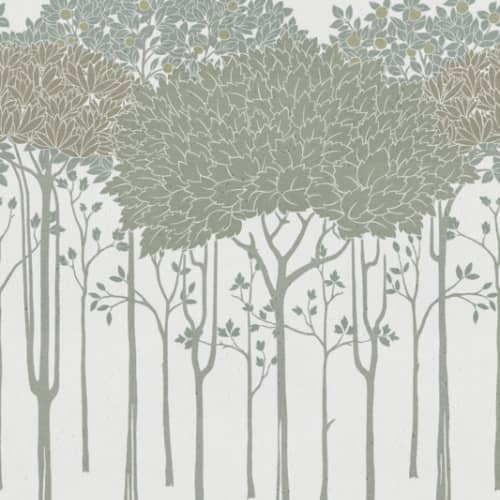 Border przedstawiający panoramę drzew wyprodukowany na metalizowanej połyskujacej powierzchni. Pochodzi z kolekcji Arts & Crafts. Produkt ten będzie świetnym elementem każdej aranżacji wnętrza.