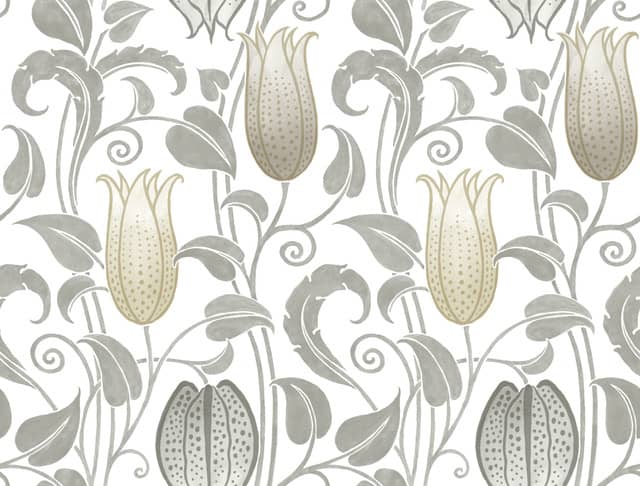 wzór: Tapeta botanika kwiaty Ronald Redding Arts & Crafts AC9204 szarość