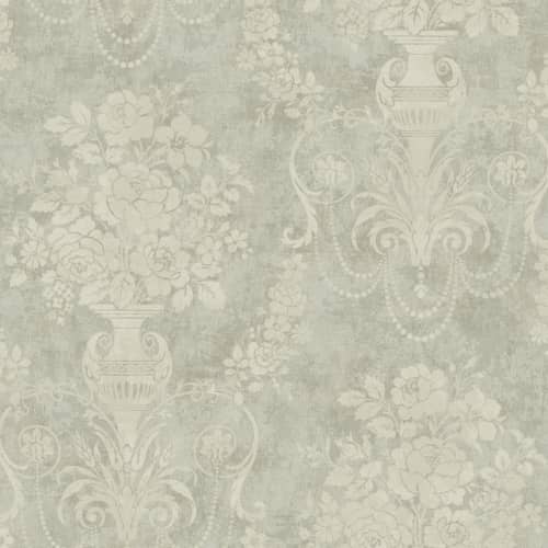 Tapeta KENTON CR30508 w klasycznym stylu ozdobiona bukietami kwiatów i girlandami, przepięknie mieniąca się w świetle. Posiada wyczuwalny w dotyku wzór, który został naniesiony na przetarte tło.