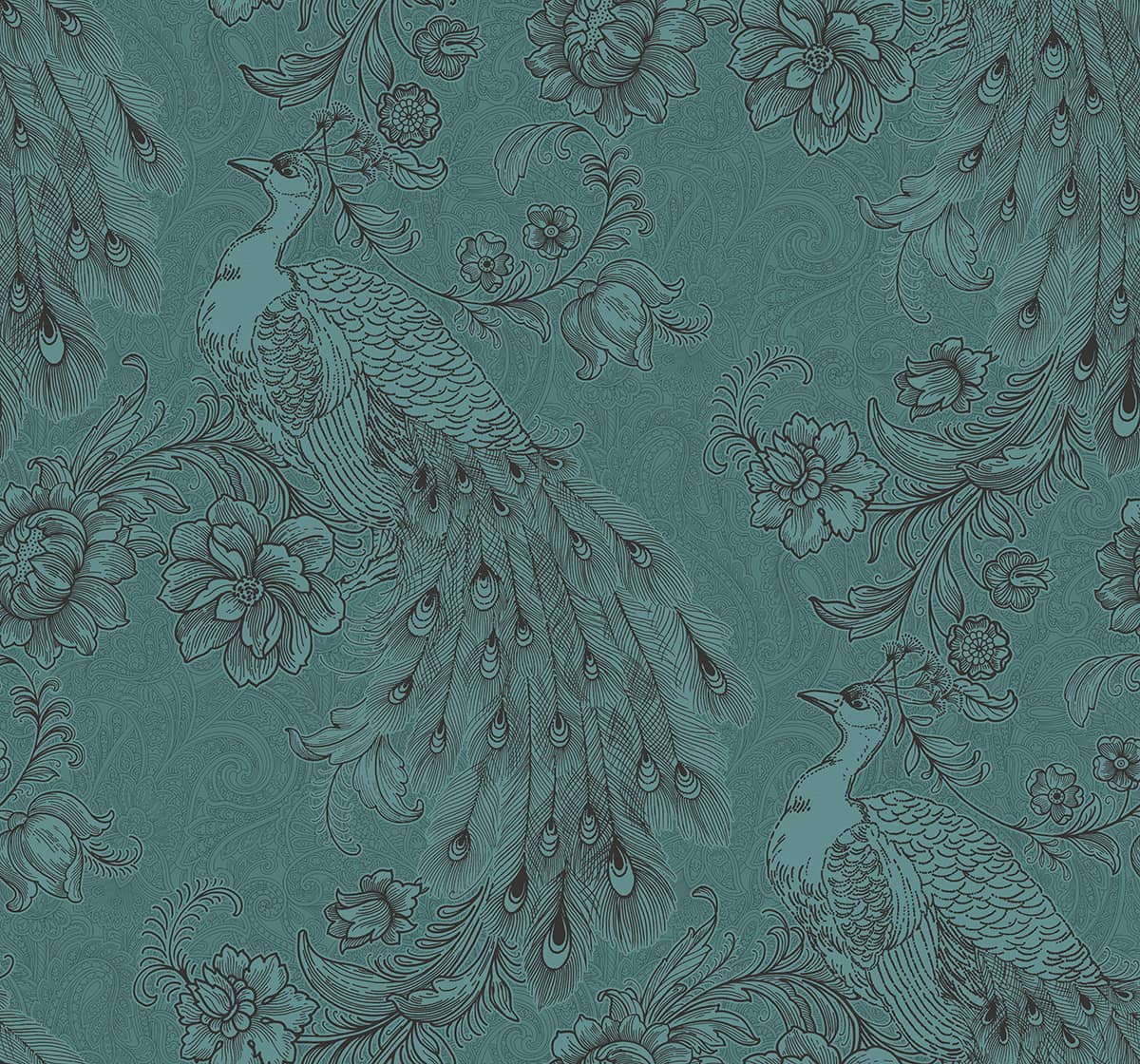 Tapeta  KASHMIR CR32712 z motywem pawia siedzącego na ukwieconej gałęźi, jest zdobiona kryształkami Swarowskiego na ogonie, które nadają tapecie wyjątkowy ekskluzywny wygląd. Odporna na uszkodzenia, zmywalna. Ekskluzywna tapeta winylowa na podkładzie flizelinowym.