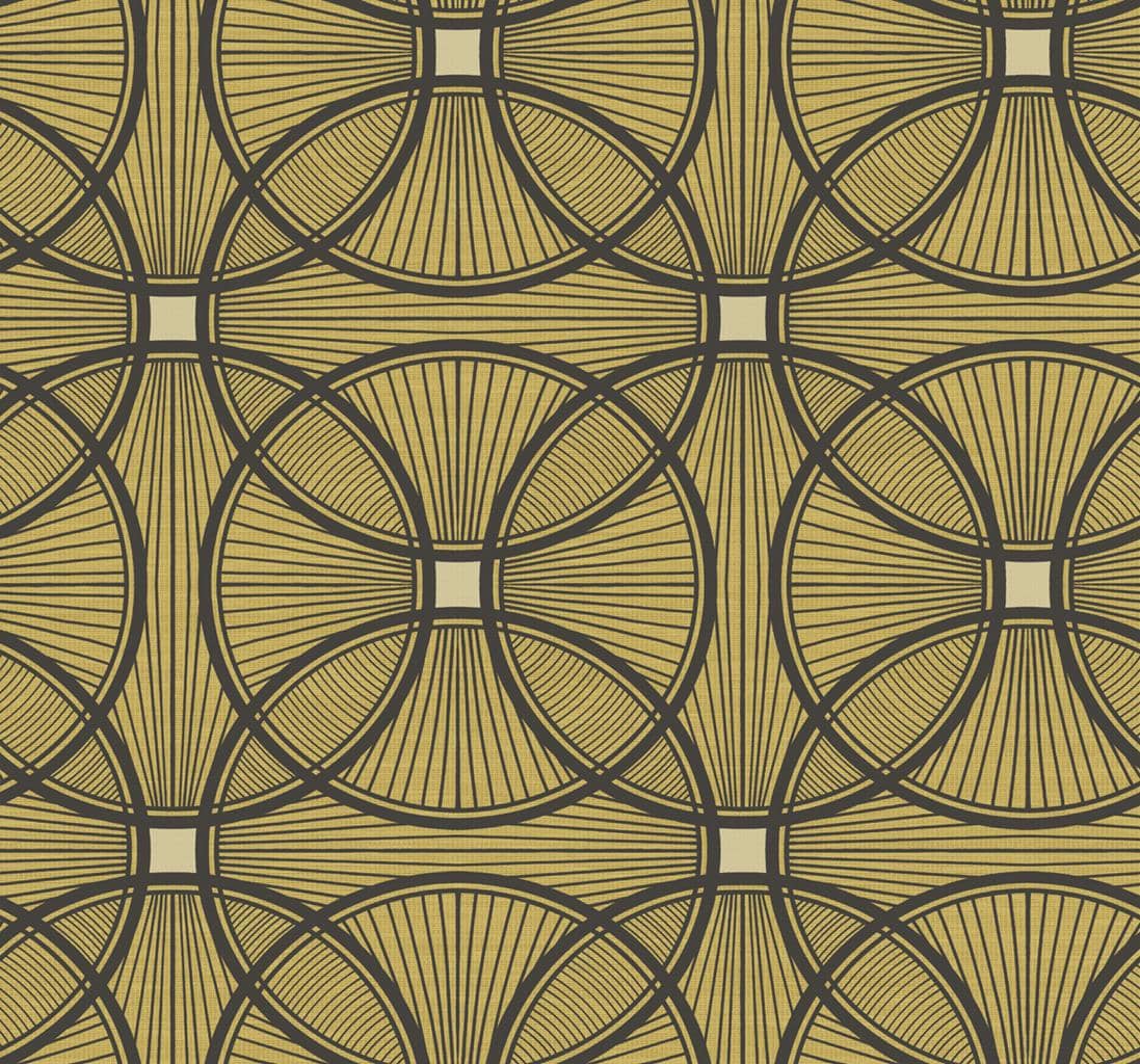 wzór: TAPETA COLLINS&COMPANY DECO GE 10401 KOŁA GRAFITOWY ZŁOTY