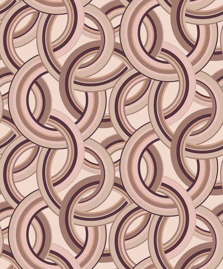 Orginalna tapeta z katalogu Boheme przedstawia duże, przeplatające się koła. Żywe, bordowo-różowe barwy i odrobina perłowego połysku pięknie oddają jej nowoczesny charakter. Ta tapeta to idealny przykład stylu art deco, jego harmonii i elegancji. Kolekcja Boheme to zbiór wzorów inspirowanych stylem art deco i designem z lat 20 XX wieku. Symetryczna geometria, stylizowane, kwiatowe wzory i kolory zaczerpnięte z natury, często z odrobiną połysku. Ten styl to połączenie luksusu z wygodą i nowoczesnością. Taki właśnie jest katalog Boheme-ponadczasowa elegancja i doskonała jakość wykonania w przystępnej cenie. Kolekcja spełni oczekiwania najbardziej wymagających klientów.