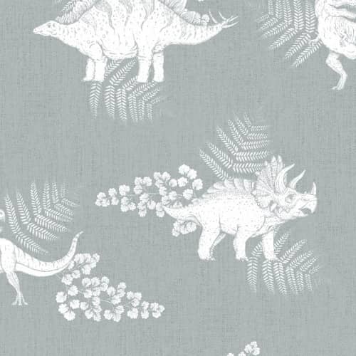Wzór przedstawiający dinozaury będzie idealnym rozwiązaniem i pomysłem na ozdobienie ścian w pokoju chłopca, który interesuje się archeologią i historią. Dinozaury przedstawione są w naturalnych pozach z zachowaniem anatomicznych elementów. Pastelowy odcień zieleni będzie działał kojąco i uspokajająco na zmysły dziecka.