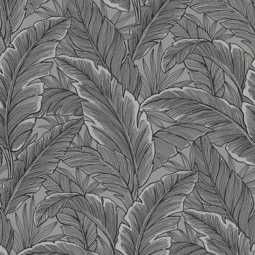 Piękna tapeta z kolekcji Black&White firmy Etten Gallerie przedstawia czarne, palmowe liście, gęsto nadrukowane na srebrnym tle. Wzór ma wyraźną fakturę i mocno błyszczy co dodaje tej okładzinie wyrazistości. Tapeta idealna do salonu. Kolekcja Black&White  to zbiór klasycznych wzorów w stonowanych kolorach, z przewagą czerni i bieli. Znajdziemy tu geometrię, motywy roślinne, pasy i ornamenty czyli wszystko to, co w designie jest najbardziej uniwersalne i ponadczasowe. Poza czernią i bielą, sporo tu beżu i szarości, wzbogaconych połyskiem piasku kwarcowego. Dodatkowym atutem tej kolekcji jest wyczuwalna, różnorodna struktura i doskonała jakość wykonania.
