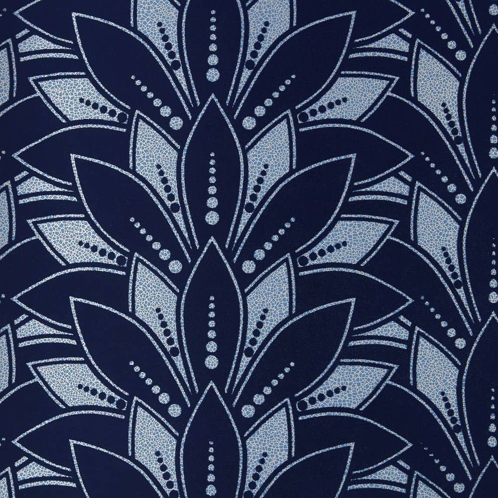 Wyjątkowa tapeta o zróżnicowanej strukturze pochodzi z kolekcji Elodie angielskiej marki 1838 Wallcoverings. Granatowy welurowy wzór na gładkim błyszczącym tle inspirowany roślinnymi motywami. Tapeta jest przyjemna w dotyku. Nada wnętrzom niepowtarzalnego charakteru.