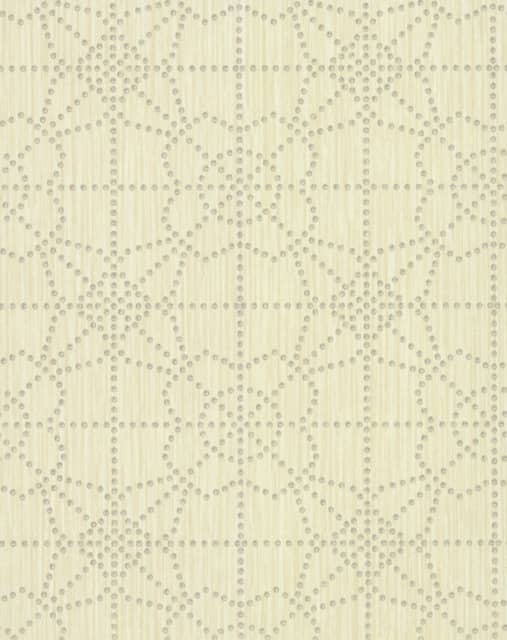 Winylowa tapeta RS1019 w ciepłych odcieniach kremowych. Na strukturalnym tle przedstawiony jest geometryczny motyw przedstawiający symetryczne, graficzne linie, które układają się w kwiaty. Za pomoca tego produktu w ciekawy sposób odmienimy wnętrze i zaakcentujemy ścianę.