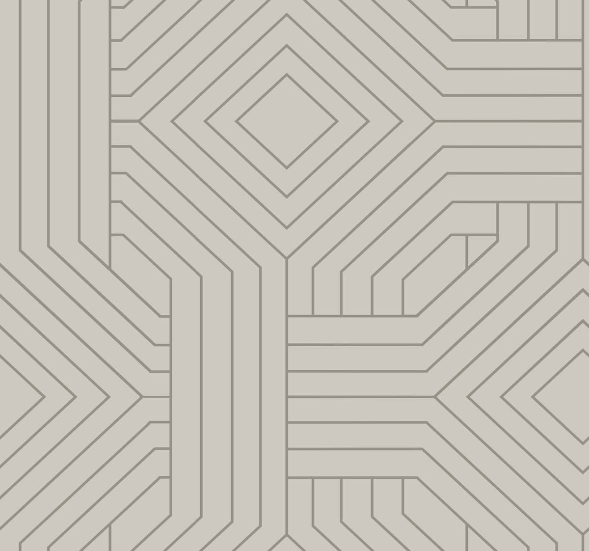 Geometryczny motyw tapety w beżowym odcieniu z połyskującym wzorem. Produkt pochodzi z kolekcji Modern Artisan firmy York Wallcoverings autorstwa znanej amerykańskiej projektantki Candice Olson. Tapeta tworzy nowoczesny labirynt. Graficzny charakter wzoru będzie się ciekawie prezentował na ścianie. Tapeta wniesie do wnętrza styl, elegancję i szyk.