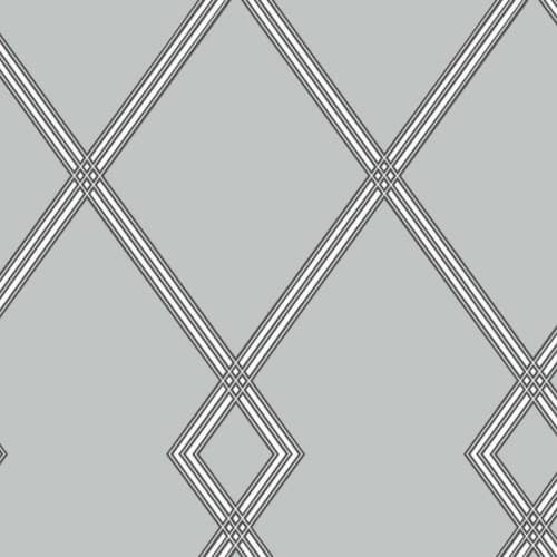 Tapeta pochodzi z kolekcji Conservatory amerykańskiej firmy York Wallcoverings. Geometryczny grafitowy wzór w postaci rombów na matowym tle o kolorze szarym przyciąga wzrok i nada nieco ożywienia nowoczesnemu wnętrzu.