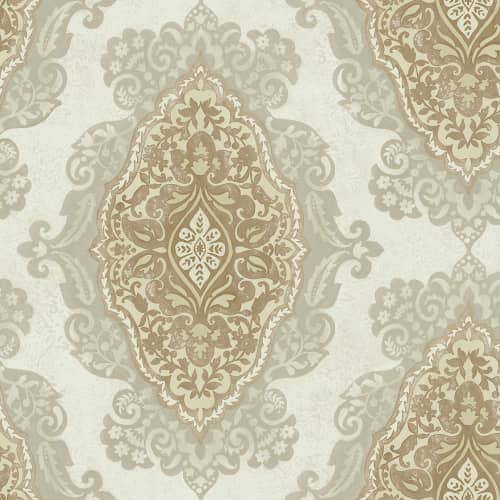 Tapeta przedstawiająca wzór damasku w jasnych odcieniach złota doda elegancji i klasy każdej aranżacji. Piękne i ponadczasowe wzornictwo doda lekkości i finezji we wnętrzu. Spokojna kolorystyka będzie pasowała do wielu  pozostałych elementów we wnętrzu. Taki wzór idealnie sprawdzi się w salonie czy sypialni. Tapeta zadowoli najbardziej wymagających klientów, którzy cenią sobie wysoką jakość produktów.