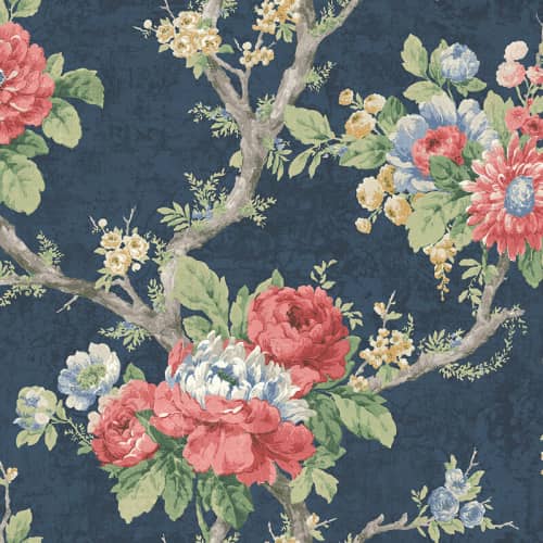 wzór: Tapeta kwiaty drzewa Nina Hancock Brockhall NH20411 granatowy
