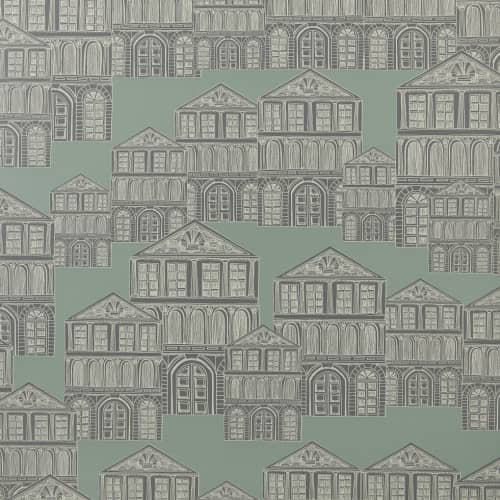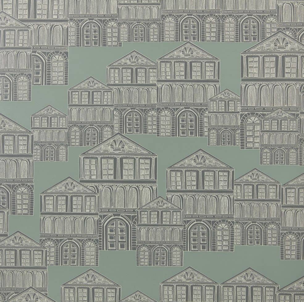Pobierz teksturęTapeta przedstawia przepiękną ilustrację stojących w rzędzie domków. Delikatny motyw doskonale ozdobi klasyczne wnętrze, jak i pokój chłopca, gdzie nada mu niebanalnego uroku. Projekt inspirowany architekturą został dopełniony matowym tłem w odcieniu seledynowym, co nadaje kunsztu i elegancji całej aranżacji.
