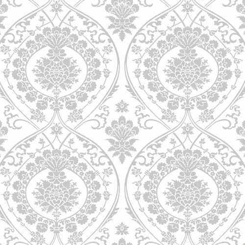 Efektowna tapeta z ornamentowym zdobieniem pochodzi z kolekcji Damask Resource Library amerykańskiej firmy York Wallcoverings. Adamaszkowy wzór z akcentem kwiatowym stanowi harmonijne połączenie klasyki z nowoczesnością. Ma wyczuwalną strukturę oraz został ozdobiony metalicznymi akcentami, tworząc niesamowity efekt wizualny. Tapeta w wyjątkowy sposób ożywi każde wnętrze, będąc jego kompletną lub częściową metamorfozą.