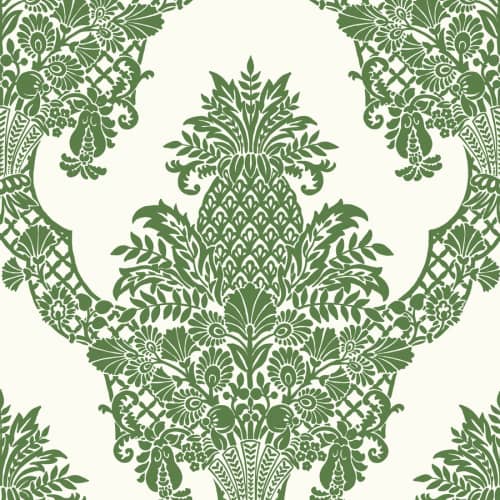 Efektowna tapeta z ornamentowym zdobieniem pochodzi z kolekcji Damask Resource Library amerykańskiej firmy York Wallcoverings. Zainspirowany symbolem gościnności w krajach egzotycznych, nietuzinkowy wzór adamaszkowy przedstawia ananas znajdujący się w sercu bujnej roślinności. Tego typu okładzina ścienna w wyjątkowy sposób ożywi każde wnętrze, będąc jego kompletną lub częściową metamorfozą.