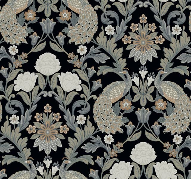 Zjawiskowy, bogato zdobiony produkt. Wzór układający się w ornament przedstawiający przeplatające się liście, kwiaty oraz bujne ptaki , pawie. Tapeta ścienna produkcji amerykańskiej marki York. Ronald Redding Arts & Craft to bogactwo wzorów synonim klasy oraz ponadczasowej elegancji. Różnorodne formy roślinne, pnącza przedstawione w ciekawym ujęciu. Ten produkt będzie pięknie prezentował się we wnętrzu ozdobi je w inspirujący sposób. Aranżacja wnętrza z użyciem tej tapety będzie stylowa i niepowtarzalna. Gładka jednorodna struktura tapety będzie elegancka i stylowa.