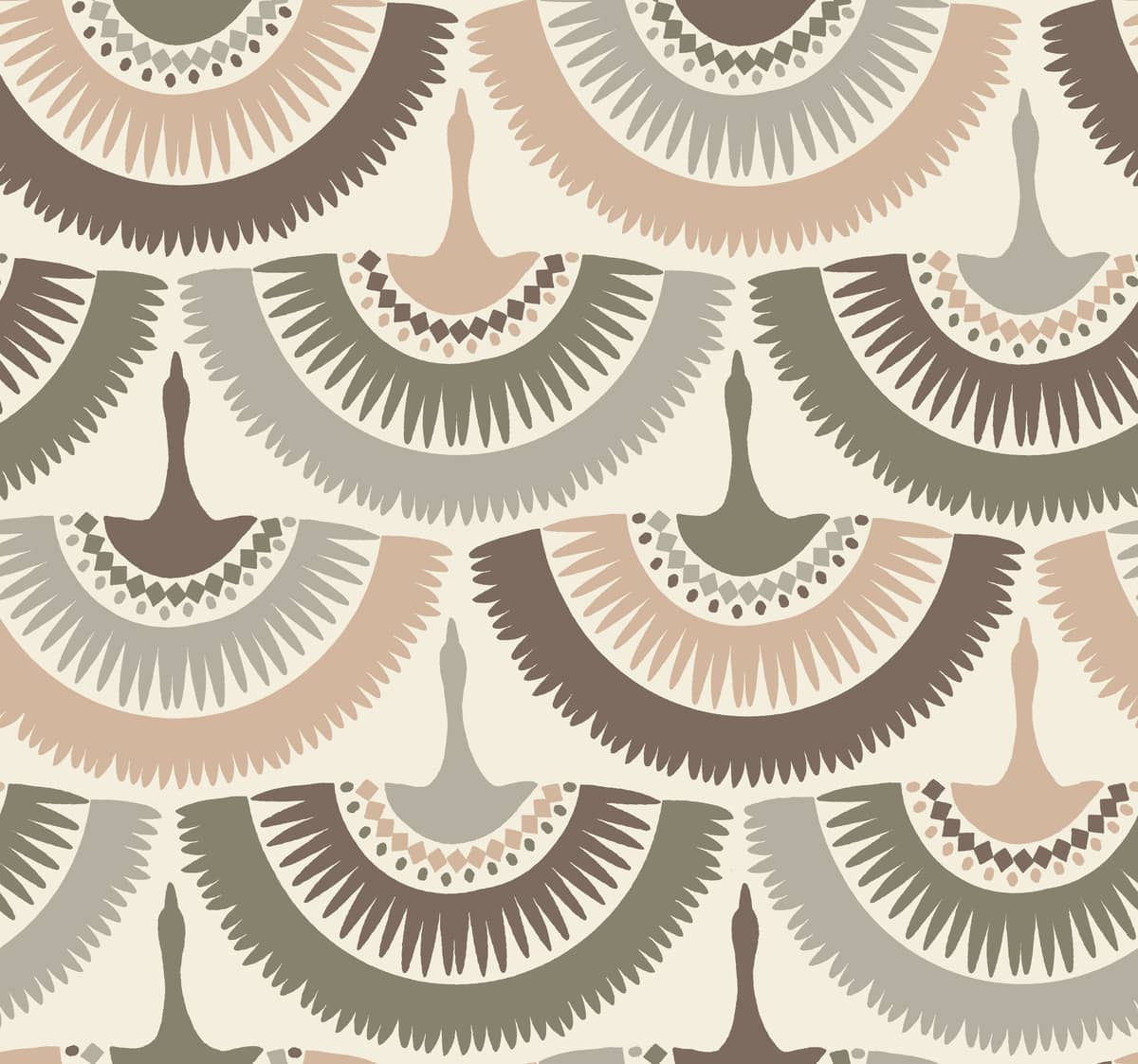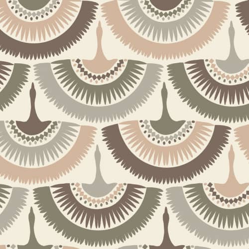 Interesująca tapeta z kolekcji Antonina Vella Boho Luxe amerykańskiego producenta York Wallcoverings przedstawia symetryczny i powtarzalny motyw żurawi w locie. W wyjątkowy sposób odmieni każde wnętrze, będąc jego kompletną lub częściową metamorfozą.
