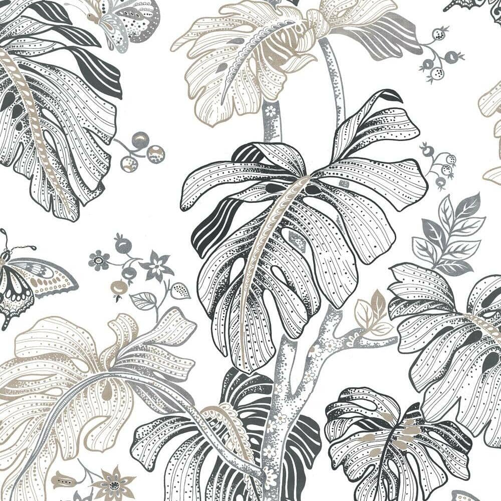 Przedstawia motyw szarych tropikalnych liści na białym tle, które będą ożywiać każde wnętrze.
