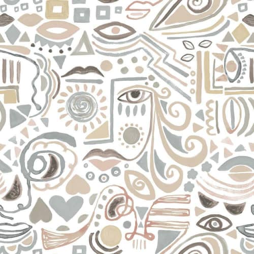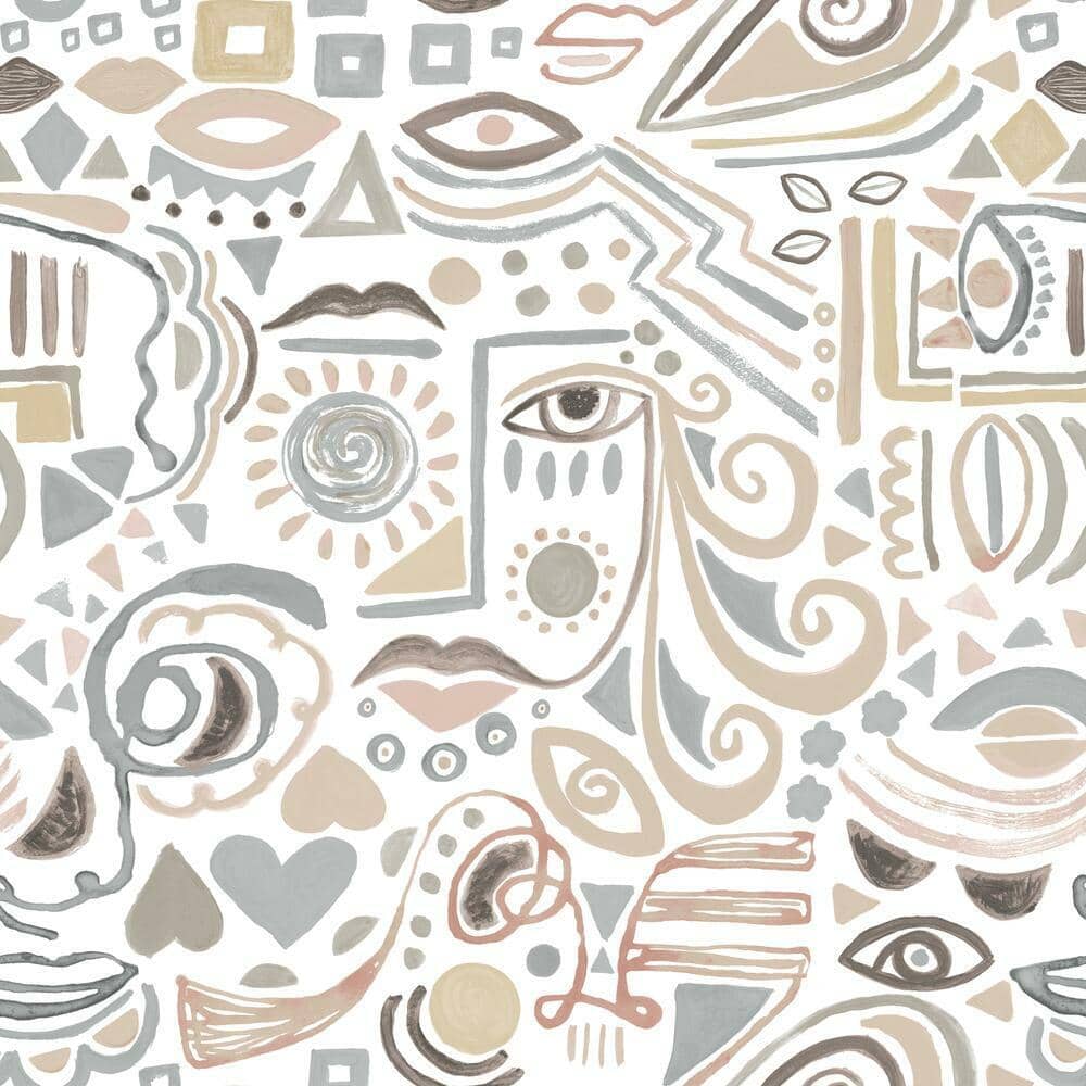 wzór: Tapeta samoprzylepna RoomMates RMK11898RL / beżowo szare twarze