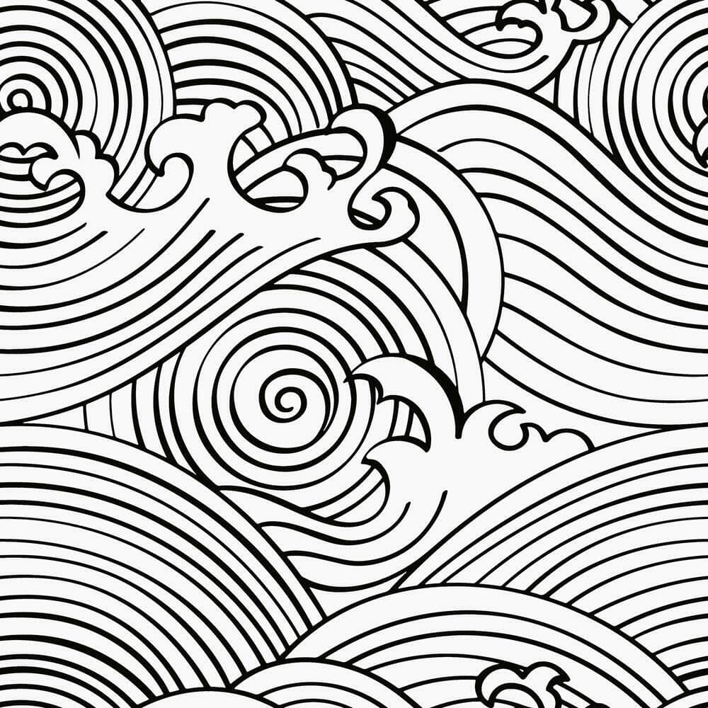 Przedstawia biało czarne fale rozkołysane przez ocean.