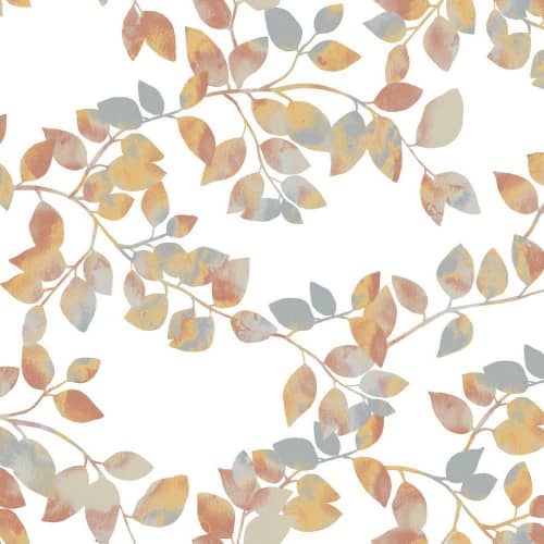 Przedstawia motyw drobnych liści na gałęziach w wybarwionym odcieniu pomarańczu
