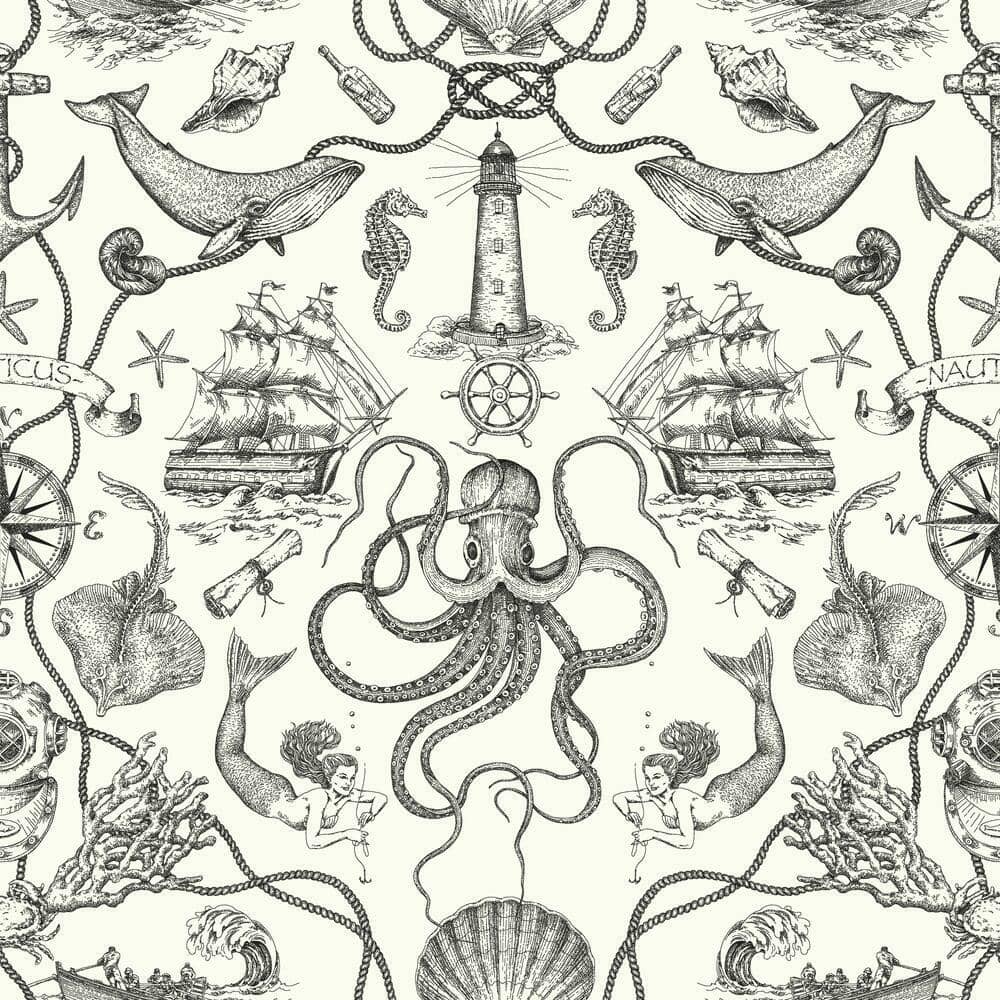 Wzór obfituje w ośmiornice, ryby, syreny, marynarskie węzły i wiele innych.