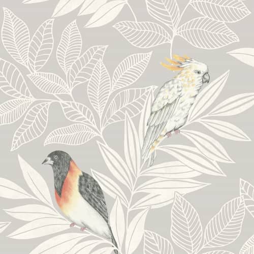 Piękna tapeta z najnowszej kolekcji Boho Rhapsody przedstawia duże, kolorowe ptaki siedzące między liśćmi. Rośliny są białe, tło łagodnie szare ale dzięki pomarańczowym piórkom, całość jest wesoła i świetnie ożywi salon lub sypialnię. Cała kolekcja to zbiór okładzin w stylu boho - hipisowskie kwiaty, wielobarwne, jakby namalowane akwarelą oranamenty,nieregularna geomatria. Wszystkie wzory są bardzo kolorowe, wesołe i nasycone wakacyjną energią. Żywe błękity, mocne zielenie, odcienie pomarańczy. Do tego nutka czerni i szarości. Dodatkowym atutem kolekcji jest możliwość zakupu tkanin idealnie uzupełniających tapety. Sprawdzą się w najbardziej różnorodnych wnętrzach.