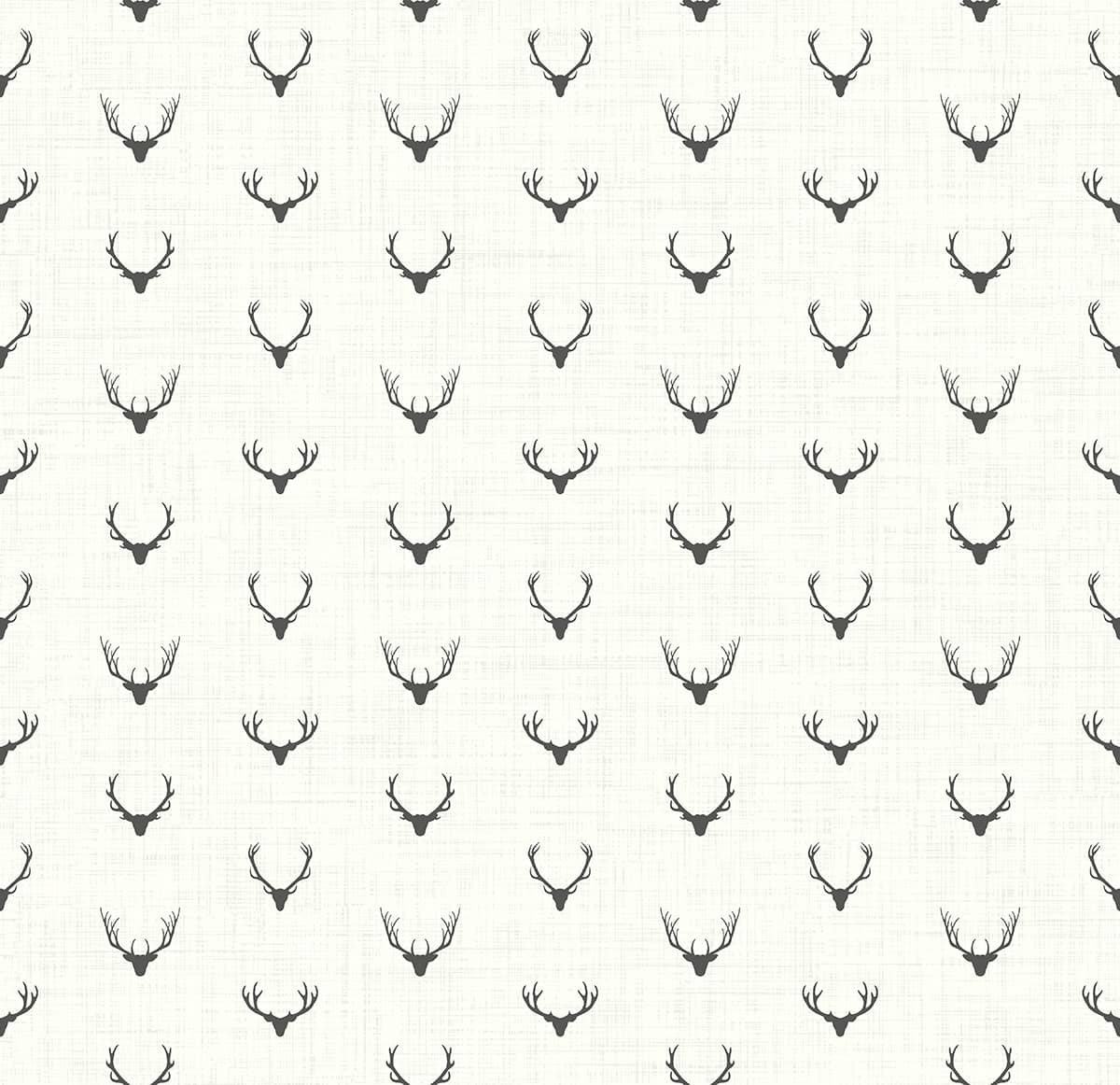 Tapeta z powtarzajacym sie motywem małych poroży jeleni, na płóciennym tle.