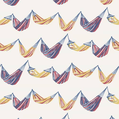 Interesująca tapeta z kolekcji Navy, Grey & White jest to jedna z propozycji amerykańskiej firmy Wallquest Inc. aranżacji współczesnego wnętrza. Wzór przedstawia kolorowe hamaki na białym tle. Tapeta w ciekawy sposób ożywi wnętrze.