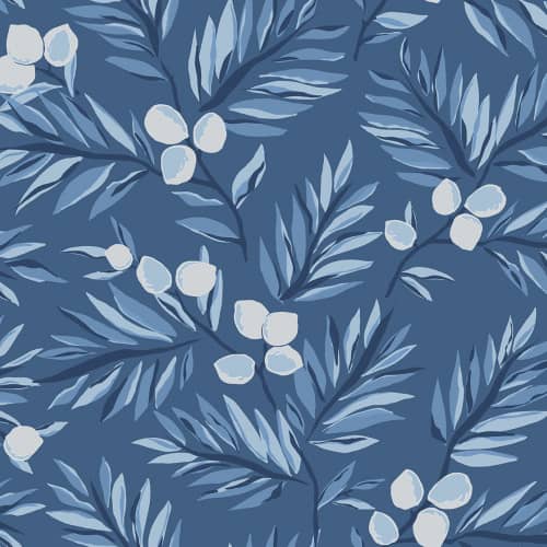 Tapeta inspirowana naturalnym pięknem przyrody, pochodzi z kolekcji Navy, Grey & White amerykańskiego producenta Wallquest Inc. Motyw gałązek drzewa oliwnego tworzy spokojny i relaksujący nastrój. Tapeta stanowi ciekawy sposób na uzupełnienie aranżacji wnętrza, wypełniając je pięknymi stonowanymi kolorami.