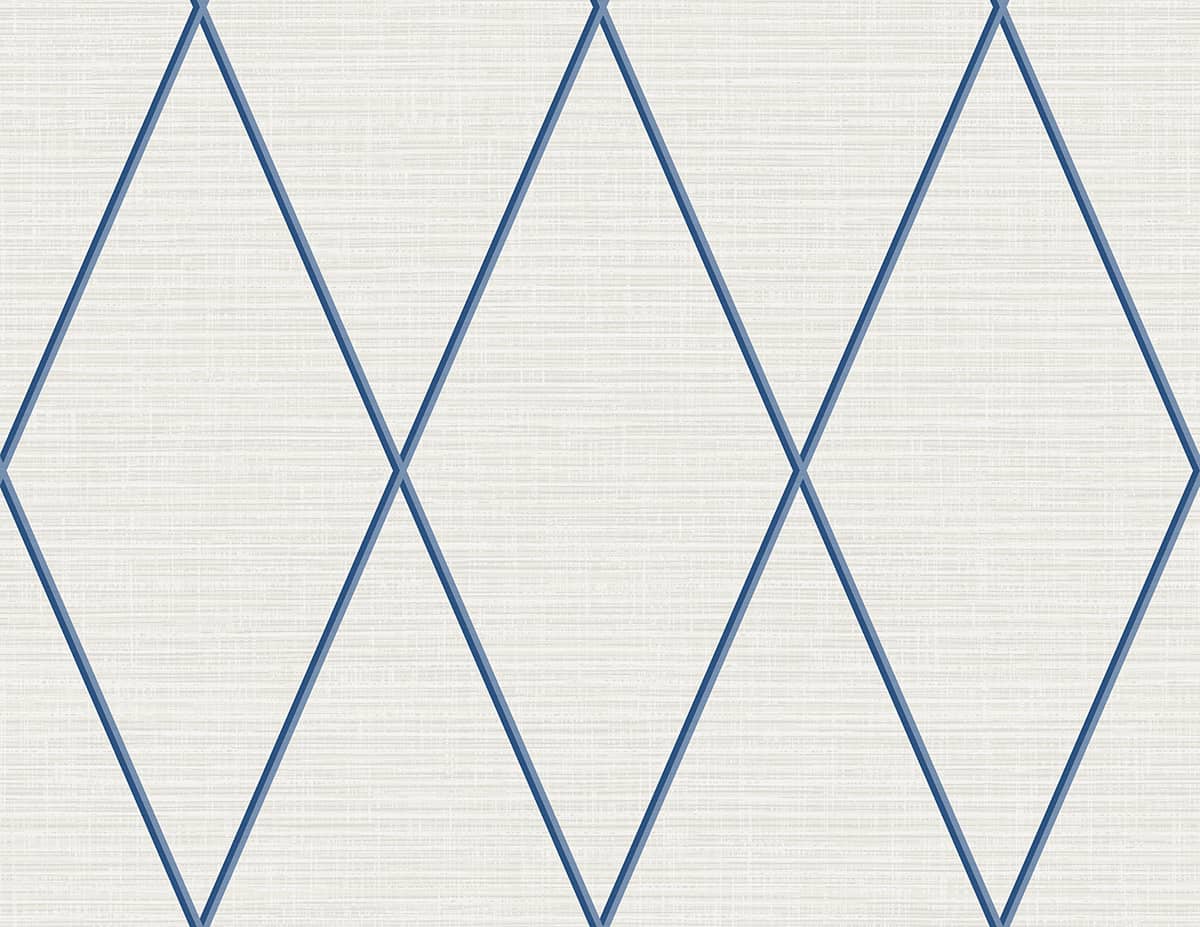Obiektowa tapeta ścienna z kolekcji Navy, Grey & White produkcji amerykańskiej firmy Wallquest Inc. przedstawia regularny geometryczny wzór w postaci rombów. Świetnie się sprawdzi w wielu wnętrzach.