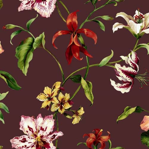 wzór: Tapeta WQ Charleston Home JB50109 kwiaty bordowy czerwony