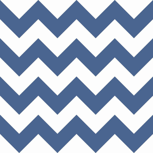 Wzór geometrycznej tapety z dziecięcej kolekcji A Perfect World amerykańskiej firmy York Wallcoverings przedstawia duże, granatowo-białe zygzaki. Idealnie sprawdzi się jako dopełnienie aranżacji pokoju dziecięcego w morskim stylu.